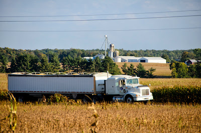 The first thing he does when he gets home from school is ask to go to the farm...and as long as homework is done and behavior is good, that's where you'll find him. One night he caught a ride home from the field in the semi.